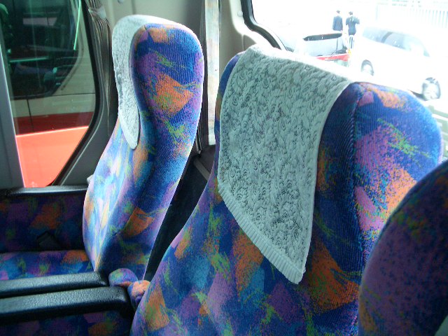 | 意外にお客さんから人気があるのが最後尾の座席です。 しかしリクライニング幅は少なく、 エンジンに近いことからお勧めはしません。 窓側の席がリクライニング前の状態。 一番リクライニングしても、座席の厚み分くらいしか リクライニングしません。 後にお客さんがいない点は気楽なのですが。 (写真座席 10C、10D) |