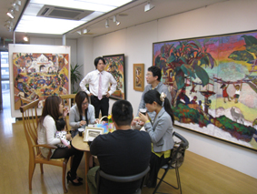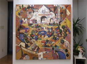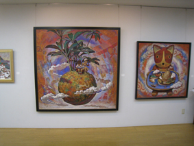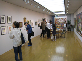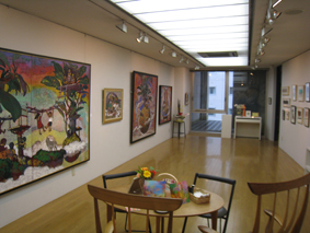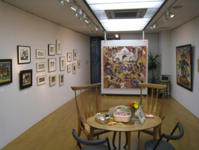 「子どもの夢・大人の夢」をテーマにした50号S(正方形)、100号S、100号S+100号Fの大作や、一つのモチーフを銅版画・手彩色画・の二つの画法で表現した小品。さらにクリアグラフという 新しい版画手法を用いて表現したもの等、約50点を展示いたしました。トップに戻る