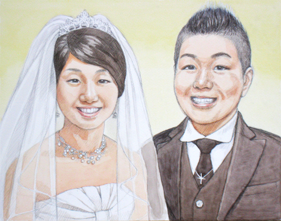 ご依頼者の写真を元に描いたものです。ブライダルのウェルカムボードの